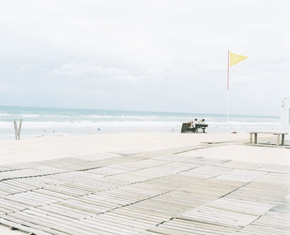 "My work examines the disappearance of Nazi Germany‘s concrete fortification on the Atlantic Coast remnantsaround Cap Ferret. Not only their physical disappearance because of corrosion, water and sand, but also the'psychological' one that results from man 'redefining and converting' those relicts by using them in many different ways. A 'snapshot' of what a place like Cap Ferret is "now“, sixty years after the end of the Second World War. Getaway destination and historical location both at the same time." Read more about the work: Looking at Bunker(photos) - Thoughts of a historian (Markus Oberndorfer: Foukauld - La Disparition, Fotohof edition, p 8-9) article - by Inge Marszolek