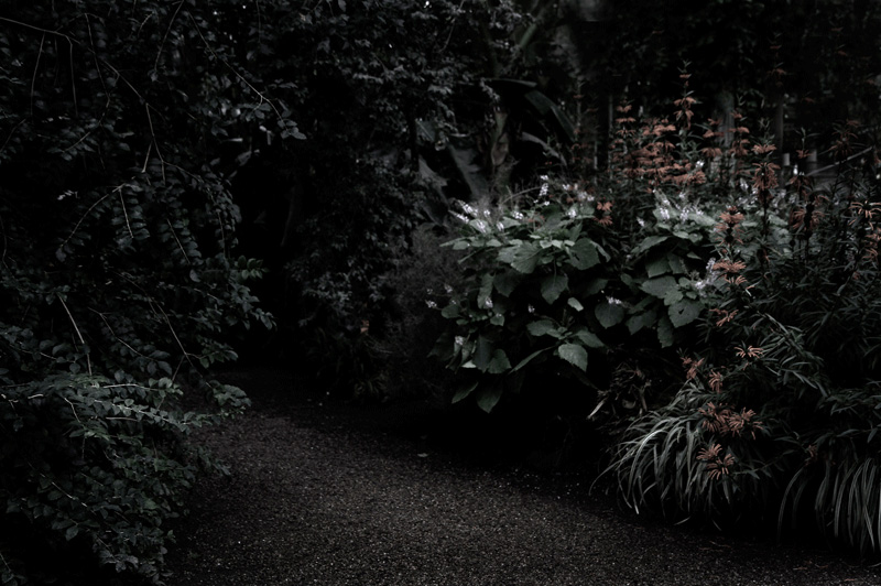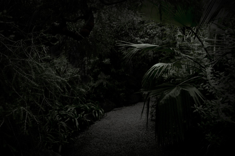 "The Haunting", "Last night I dreamt I went to Manderley again" The large scale photographs recall elements of Victorian poesy as well as Hollywood Suspense. Huge palm leaves darken the entrance to paths leading in flowered gardens - sceneries that seem to be standing outside of time, opening up a space for visions, memories andnightmares. Depicting artificially created landscapes such as conservatories and botanical gardens theimages move within a frame of reference of Victorian literature and its Hollywood interpretations of the 1930s and 40s, associating a wild and threatening nature with the leading actresses. Frozen in the first wave of feminism, burned into memory, like a bad dream re-lived again and again. The title "Last night I dreamt I went to Manderley again" is the first line in Alfred Hitchcock`s "Rebecca" based on the novel by Daphne de Maurier. The main actress looks back to her days at the gloomy country estate "Manderley" where in spite of the house's beauty, she senses an atmosphere of doom about it and gradually feels more and more haunted. Recalling elements of Victorian poesy as well as Hollywood Suspense, Tina Ribarits` photographs of a wild and threatening nature seem to be standing outside of time - frozen in the first wave of feminism, like a bad dream re-lived again and again.
